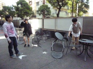 イスを倒したり、闘ったり