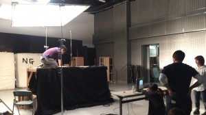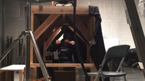 照明専攻の学生が照明機材をセット中(=´Д`=)